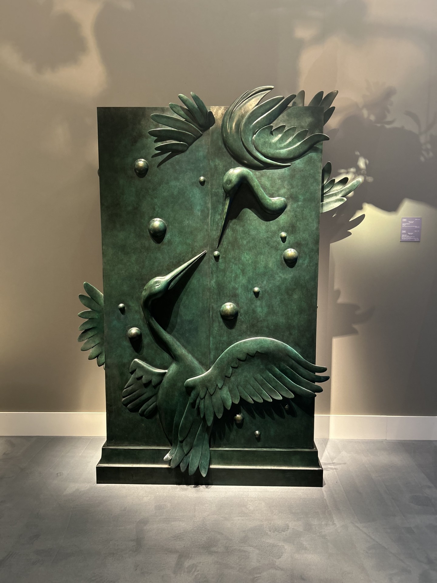 Bronze, silvered grey, black and blue patina.